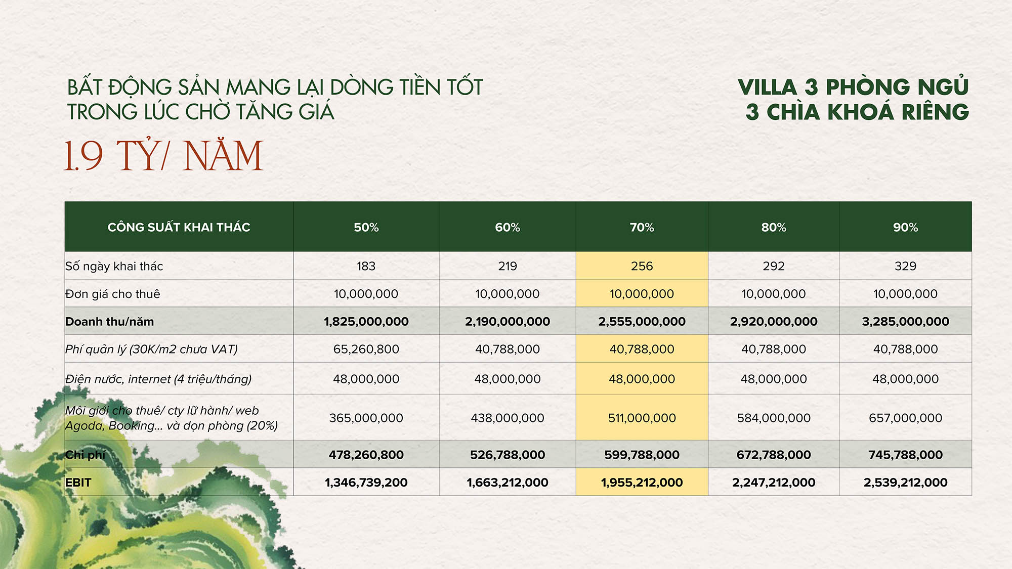 – Villa có 3-4 phòng ngủ: chìa khóa & lối đi riêng